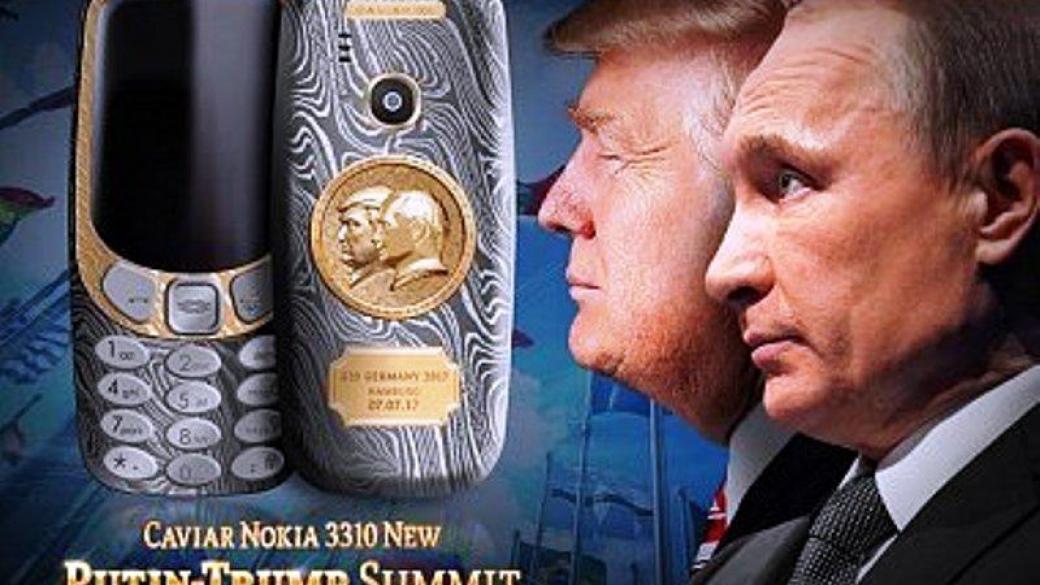 Итальянская компания Caviar представила в России дизайн мобильного телефона Nokia 3310, посвященный будущей встрече президентов США и РФ Дональда Трампа и Владимира Путина запланированной на завтра в Гамбурге.