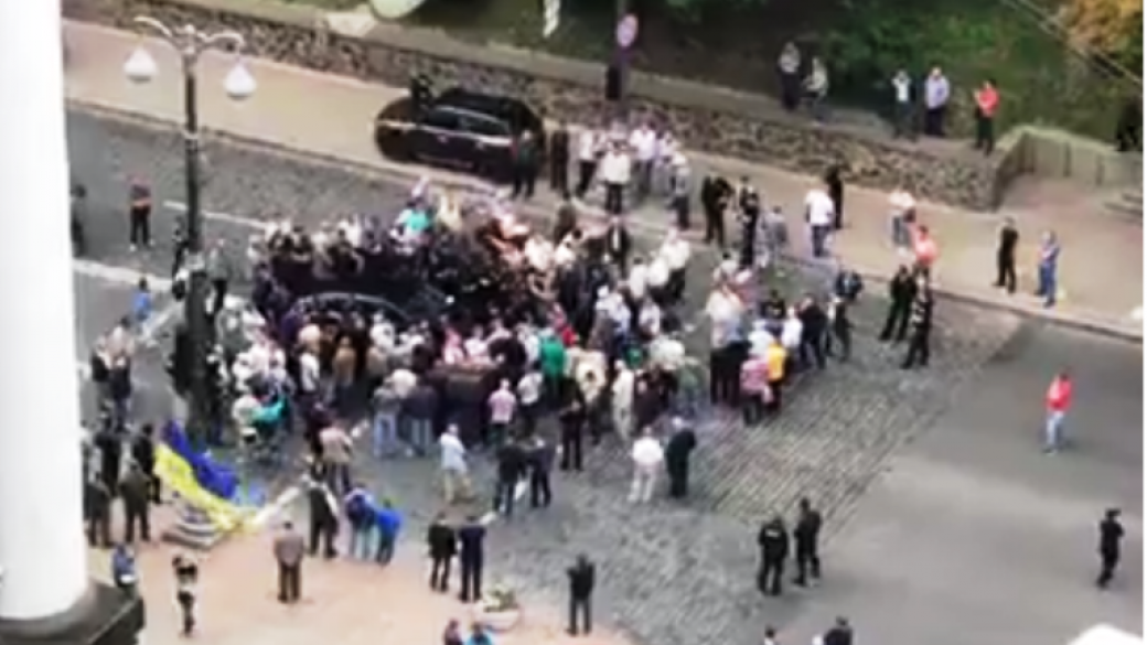 Сегодня в Киеве под зданием Кабинета министров Украины на улице Грушевского автомобиль Porsche Panamera въехал в толпу протестующих, в результате чего получил травму один из протестующих.