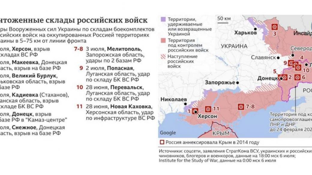 Данные собраны по состоянию на 6 июля согласно данных соцсетей, СтратКома ВСУ, украинских и российских чиновников, блогеров и военкоров.