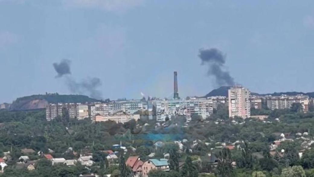 В Донецке после взрывов горят цистерны с топливом. Город затянут черным дымом
