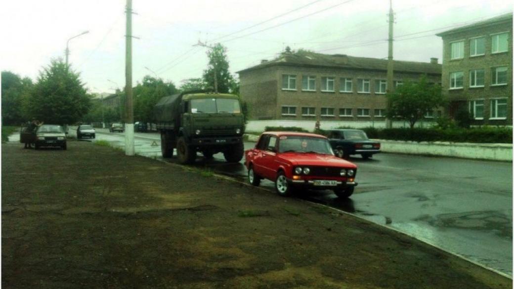 В оккупированном Луганске КамАЗ боевиков «ЛНР» въехал в легковой автомобиль «Жигули».