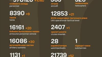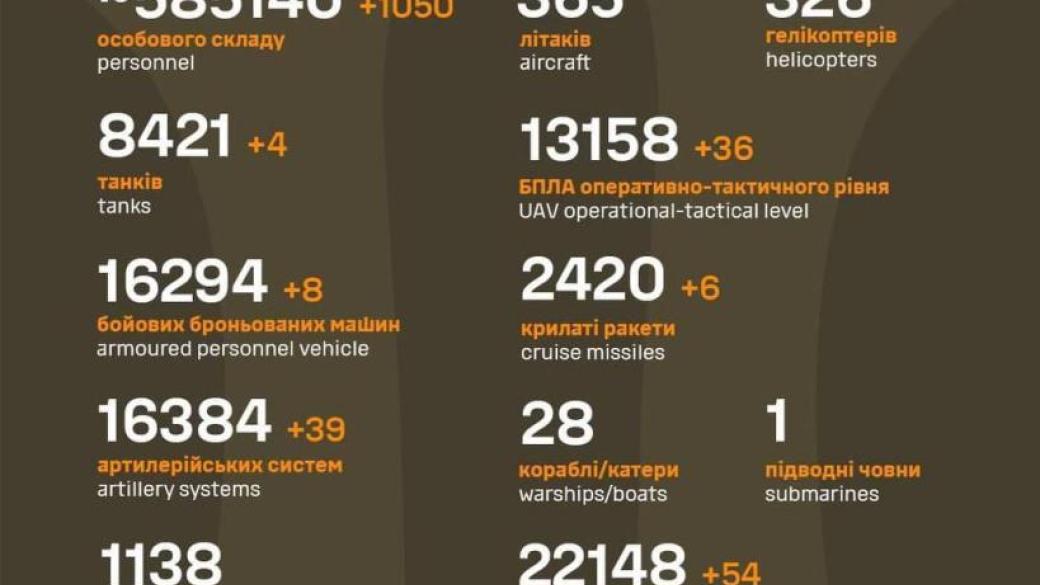 Только за минувшие сутки было ликвидировано 1050 захватчиков, 6 крылатых ракет и около 150 единиц вражеской техники.