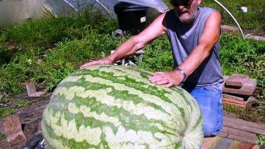 В Херсонской области вырос огромный арбуз вес которого составляет 119 килограмм, а размером он почти в половину человеческого роста.