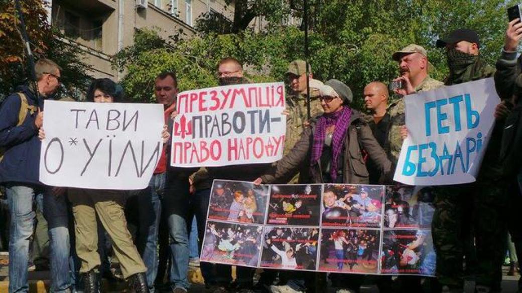 В Киеве у здания МВД представители «Правого сектора», ВО «Свобода» и ОУН требуют отставку главы МВД Арсена Авакова и руководителя Нацполиции Хатии Деканоидзе.