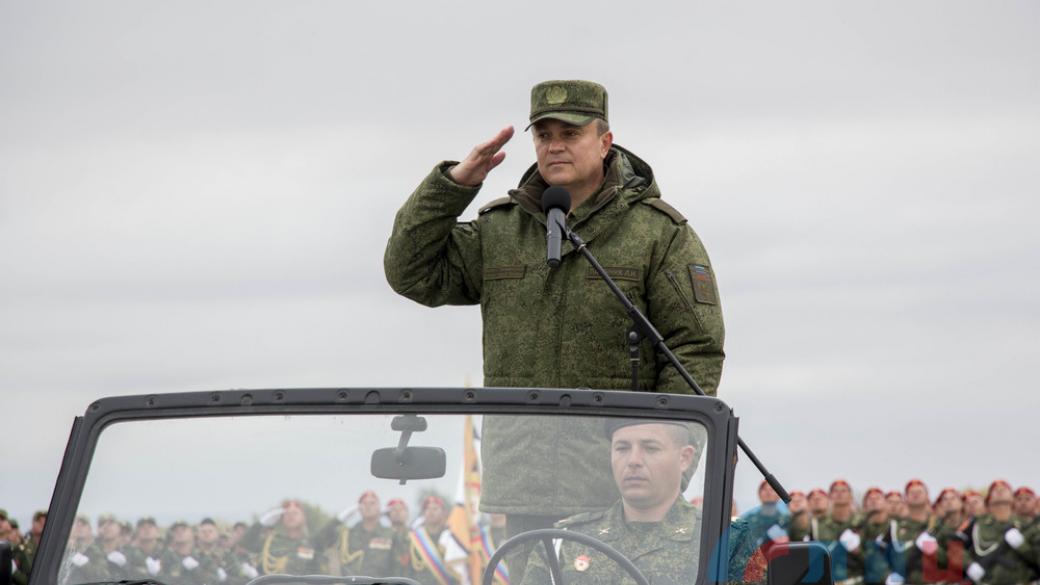 Принимал парад «верховный главнокомандующий» Леонид Пасечник, который заявил, что сегодня «республика» находится «под надежной защитой закаленных в боевых условиях опытных бойцов».