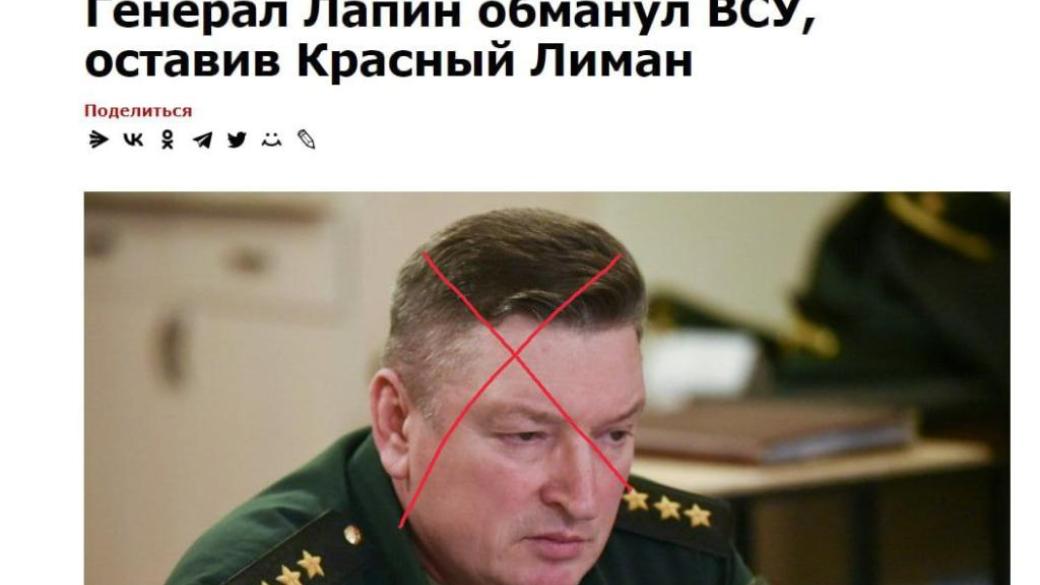 По словам пабликов, генерал РФ и по совместительству командующий группировкой "центр" Александр Лапин "обманул" ВСУ и "скрытно" отвел войска РФ с Лиманского фронта, чем "сохранил" личный состав.