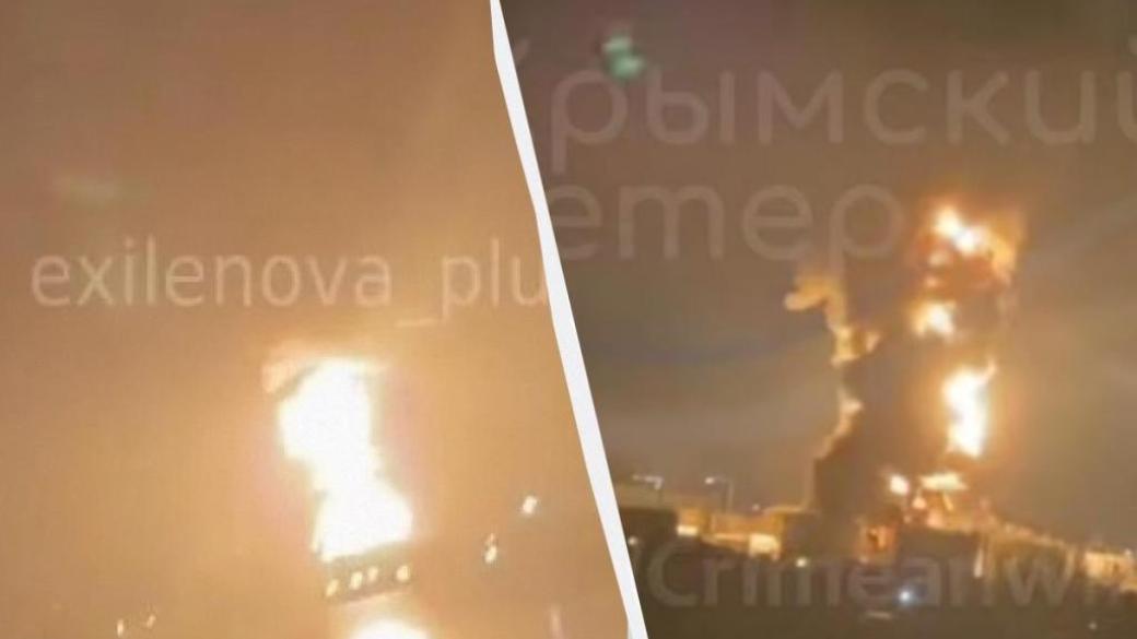"Крымский ветер" сообщил, что в Феодосии есть попадания по нефтебазе. По данным канала, в результате прилета на Феодосийском нефтеналивном терминале взорвался резервуар с топливом, зарево от пожара видно на десятки километров.