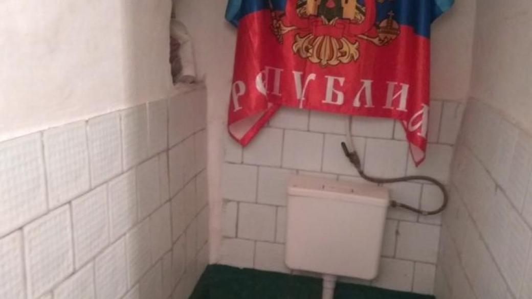 В оккупированном Перевальске Луганской области местные студенты-патриоты сорвали флаг «республики» с крыши колледжа и повесили его на бачок в туалете.