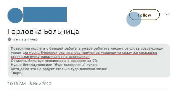 По словам горловчанки, медперсонал в ужасе от того, что рабочих рук становится с каждым днем все меньше, а нагрузка увеличивается.