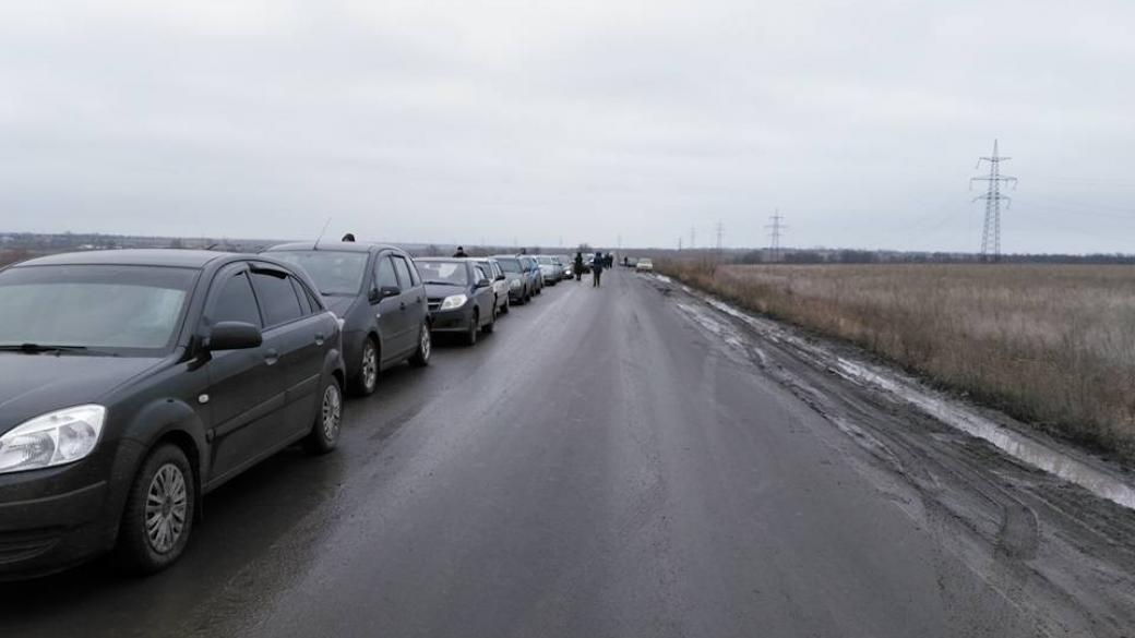 Очень большая очередь собралась на Мариупольском направлении. На Еленовском блокпосту уже после 5:00 было около 100 авто.