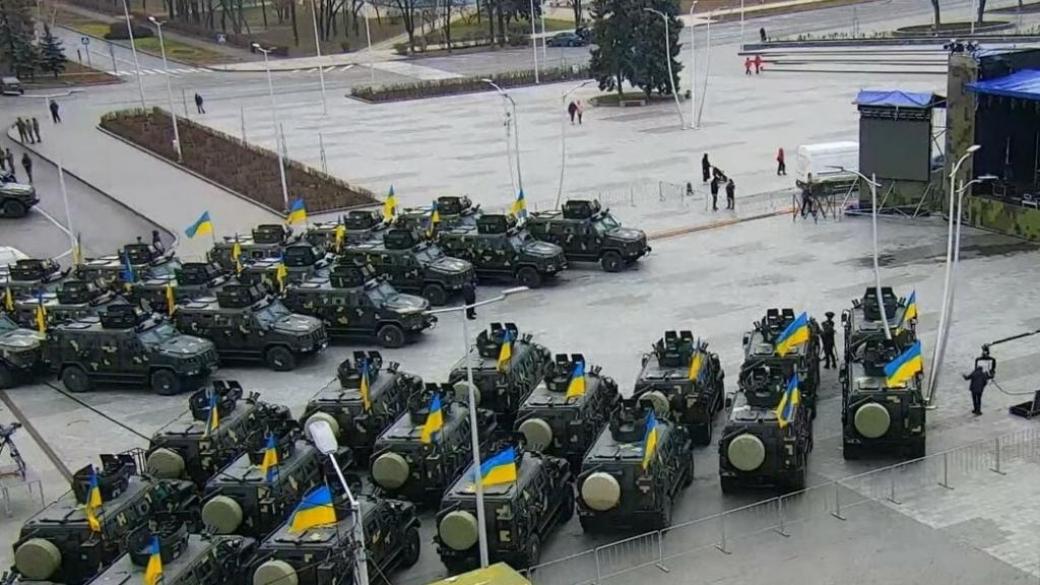 Тридцать четыре новейших бронемашин «Козак-2М1» были выставлены на главной площади города и будут переданы базирующимся в области подразделениям, которым также планируют присвоить почетные названия и боевые флаги.