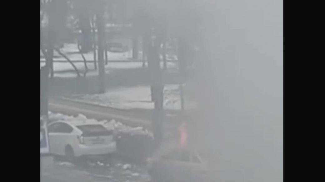 На видео, выложенном в сети, видно, как полыхает авто, его пытаются потушить подручными средствами.