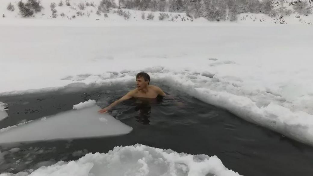 На момент съемки, по их словам, температура воздуха составила —6 градусов, а воды, приблизительно, +4 — 5 градусов.