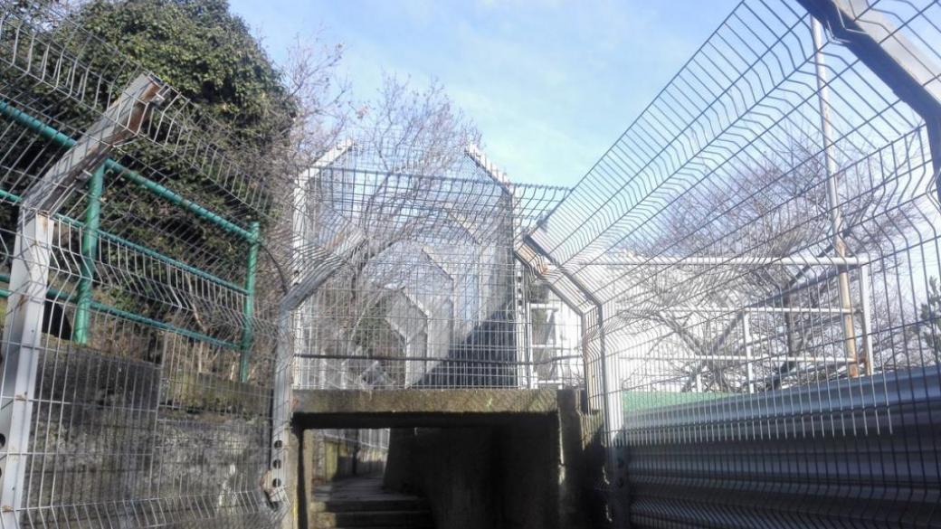 На снимках — узкая дорожка, огражденная с двух сторон. С одной — нависает бетонный забор, с другой — натянута металлическая сетка. Обе стены выше человеческого роста и построены так, чтобы невозможно было перелезть через них.