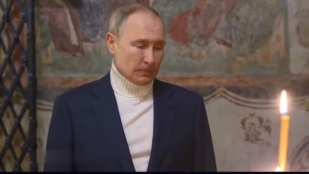 Президент РФ Владимир Путин якобы посетил рождественскую службу в одном из храмов РПЦ. СМИ РФ опубликовало несколько кадров, где видно, как глава Кремля молится внутри храма в полном одиночестве.