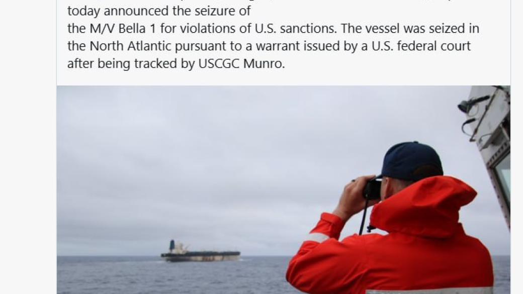 Задержание танкера произошло в Северной Атлантике, операция проводилась на основании ордера, выданного американским судом. Этому предшествовало преследование танкера кораблем Береговой охраны США.