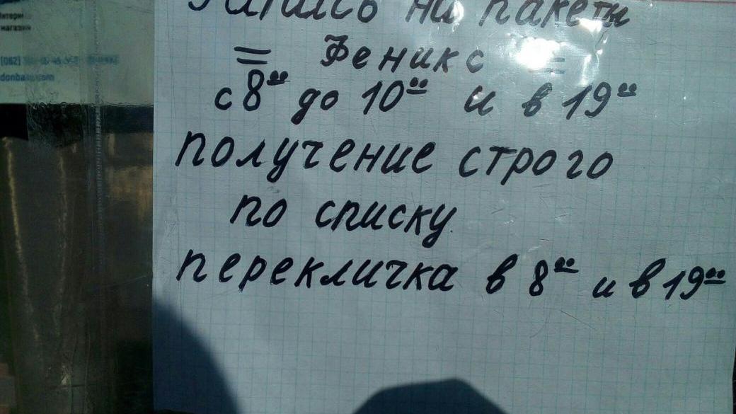 Так, в одном из сообществ в соцсетях разместили фото объявления, написанного на одном из отделения почтовых отделений города, в котором указано, когда можно записаться на покупку стартового пакета и указано время «переклички» тех, кому «повезло» попасть в список потенциальных обладателей «Феникса».