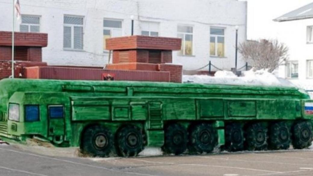 В Омской области России заключенные исправительной колонии № 6 построили из снега пусковую установку ракеты Тополь-М практически в натуральную величину.
