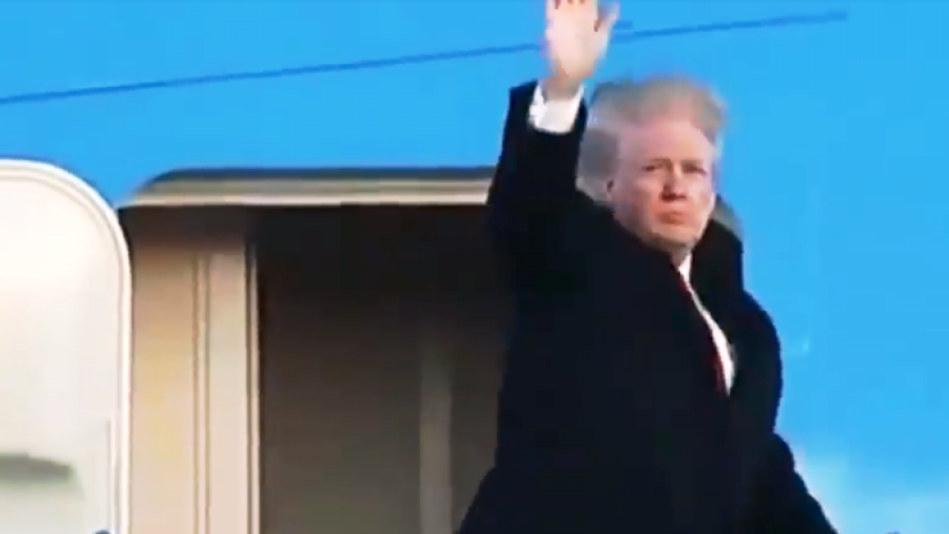 В сети выложили снимки и видео, на котором ветер в аэропорту испортил прическу президенту США Дональду Трампу и показал вместо роскошной шевелюры крупную лысину.