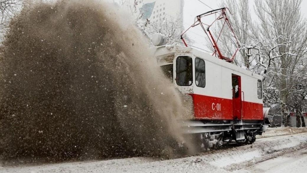 Сегодня в Донецке продолжается обрезка опустившихся на контактную сеть веток, уборка упавших деревьев и очистка трамвайного полотна от снега.