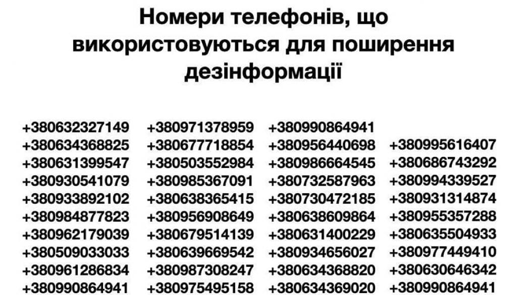 «Центр противодействия дезинформации при СНБО Украины предостерегает! Приводим перечень номеров телефонов украинских операторов, с которых звонят украинцам и распространяют дезинформацию».