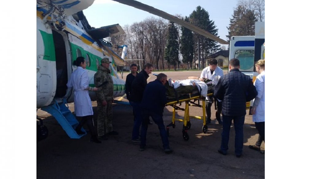 В Главный военно-медицинский клинический центр Госпогранслужбы Киева доставили вертолетом пограничника раненого на КПВВ Марьинка. Об этом сообщает Государственная пограничная служба.