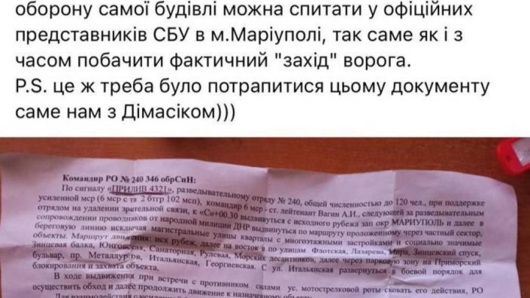 Российские оккупанты планировали штурмовать здание СБУ в Мариуполе, переодевшись в форму Нацгвардии. Об этом свидетельствует трофейный документ, который был найден у оккупантов.