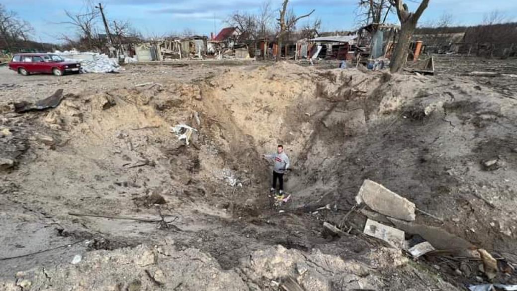 Россияне сознательно уничтожают украинские населенный пункты, где никогда не было военных объектов, сверхмощными бомбами, десятки сел в Черниговской, Николаевской, Харьковской и других областях оккупанты уже стерли с лица земли. Размер ненависти россиян к украинцам продемонстрировал украинский журналист Денис Казанский, спустившись в воронку от авиаснаряда, сброшенного российским военным летчиком на селян в пригороде Чернигова.
