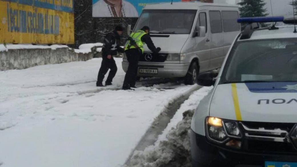 По информации полицейских, на некоторых участках дороги, в связи со значительными осадками, остановились грузовые автомобили и заблокировали движение транспорта.
