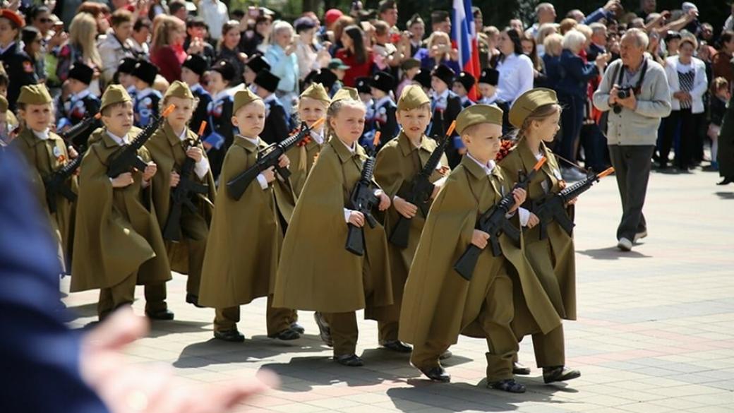 Сообщается, что в детской версии «парада Победы» приняли участие около пяти сотен воспитанников детских садов Пятигорска. В сообществе подчеркнули, что милитаризация молодого поколения россиян продолжается. Таким образом «идет подготовка юнитов для войн в Сириях и прочих Донбассах».