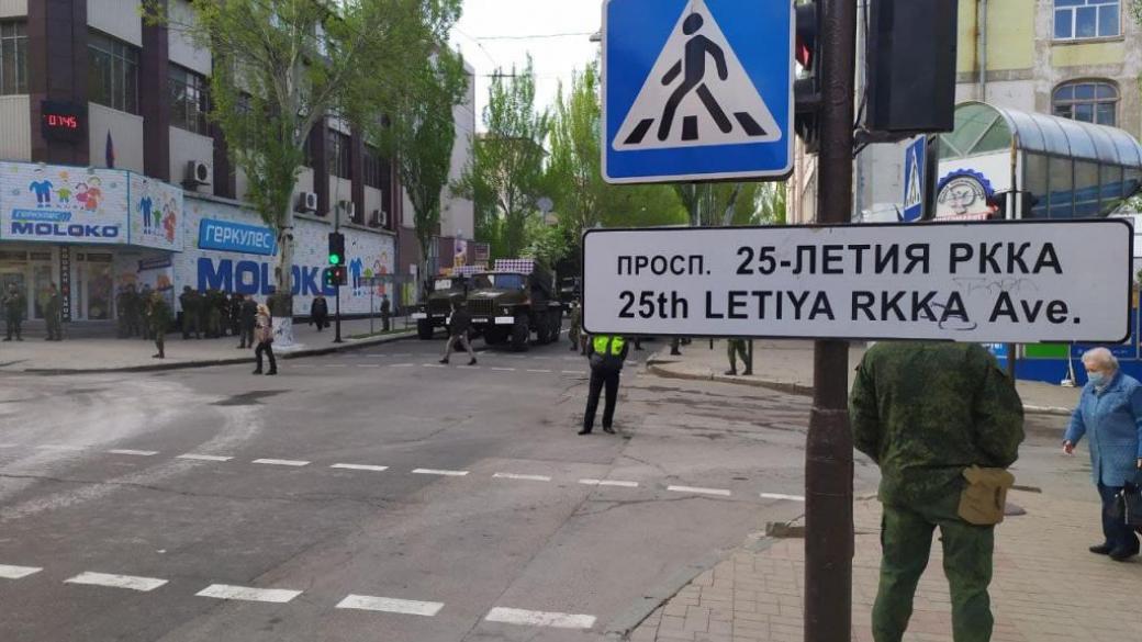 Жители временно неподконтрольного Украине Донецка показали в соцсетях фотографии репетиции парада, который пройдет 9 мая в центре города. Репетиция прошла ночью сегодня, 7 мая.