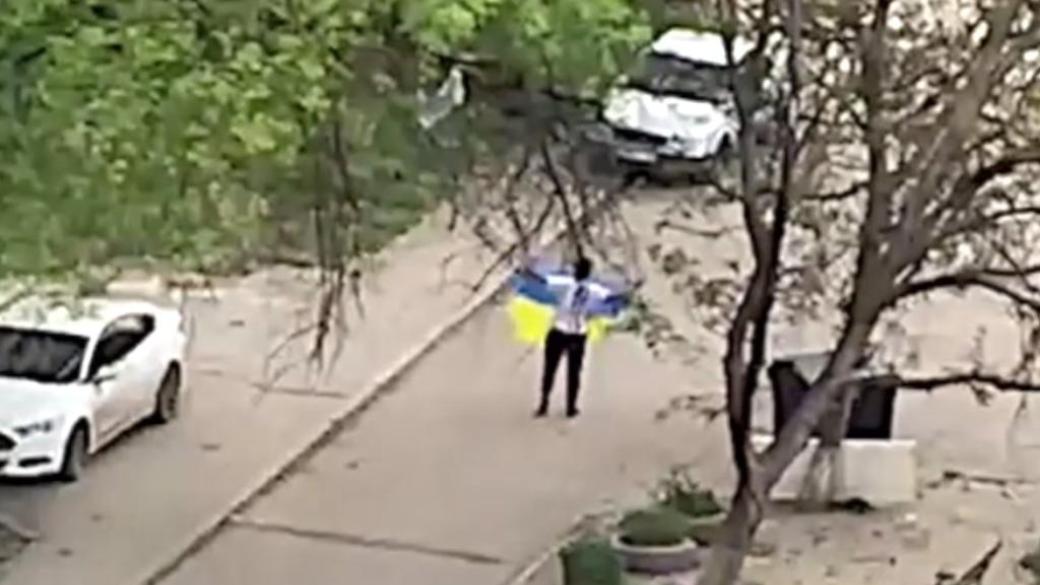 Советник мэра захваченного РФ Мариуполя Петр Андрющенко в своем Телеграмм-канале опубликовал видео, на котором видно, как мужчина несет по улице украинский флаг. В комментарии к публикации чиновник уточнил: