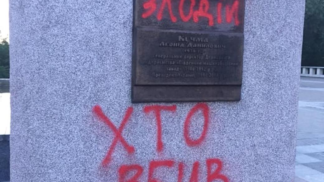 В Днепре неизвестные разрисовали красной краской стелу с барельефом второго президента Украины Леонида Кучмы. Об этом, сообщается на телеканал «Відкритий».