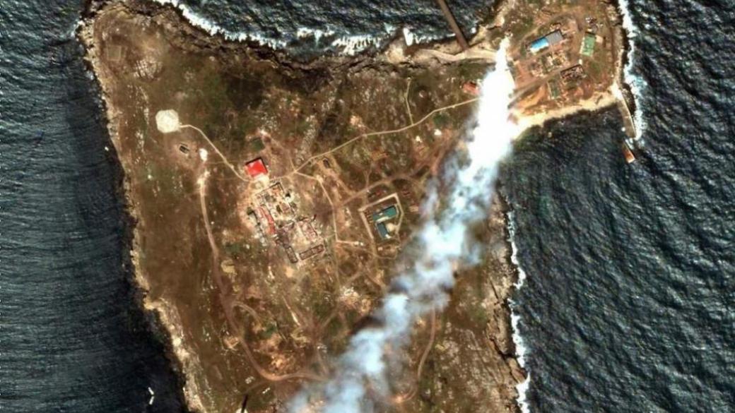 Ряд Телеграмм-каналов публикует фото захваченного российскими войсками острова Змеиный, на котором виден столб дыма. Ресурсы отмечают, что на острове пожар. На данный момент неизвестно, что стало причиной пожара. Подробности выясняются.