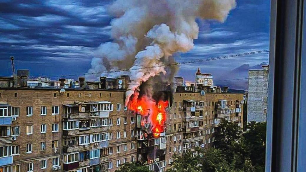 Позже он сообщил о попадании в центральной части города. "В жилом доме в центре города горят квартиры с 6-го по 9-й этаж. По предварительной информации, под завалами в квартирах находятся люди".