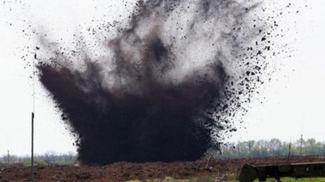 Трактор, оставшийся в искореженном состоянии на поле после того, как наехал на мину, был взорван как не подлежащий восстановлению.