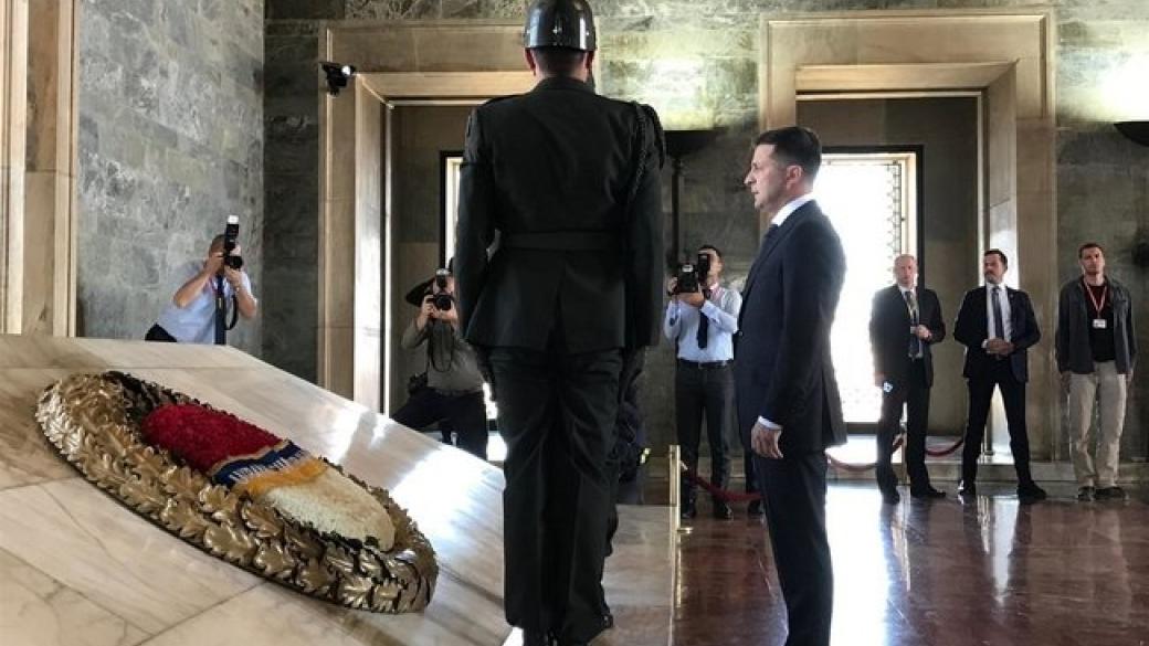 Зеленский после возложения цветов оставил запись в Книге почетных гостей. После этого кортеж президента направился в новое здание офиса крымскотатарской диаспоры в Анкаре, где состоится церемония его открытия и встреча с украинским и крымскотатарским общинами.