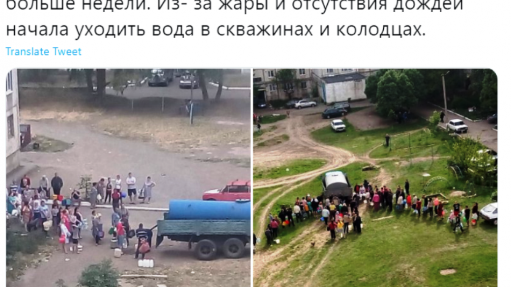«Ровеньки ЛНР. Вода на город не поступает больше недели. Из- за жары и отсутствия дождей начала уходить вода в скважинах и колодцах».
