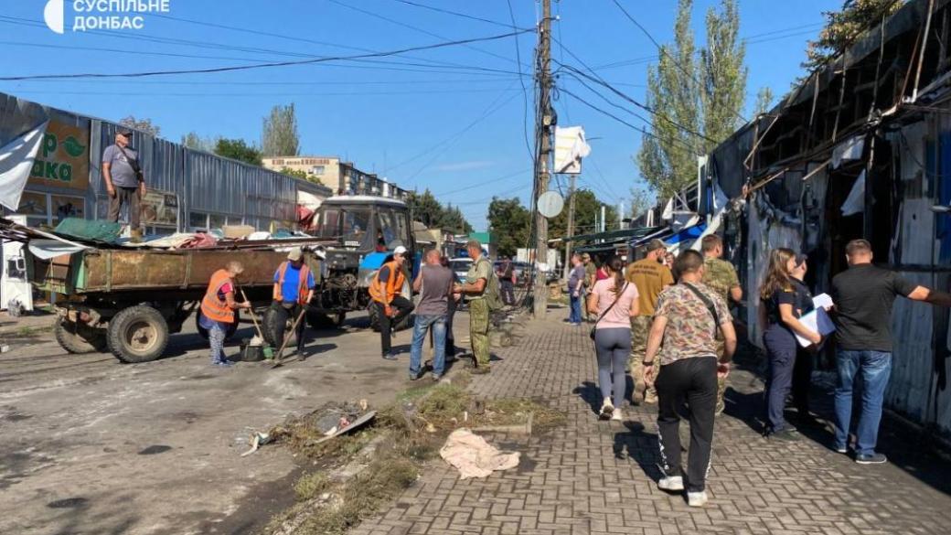 Украинские СМИ публикуют утренние фотографий последствий ракетого удара РФ по рынку в Константиновке.