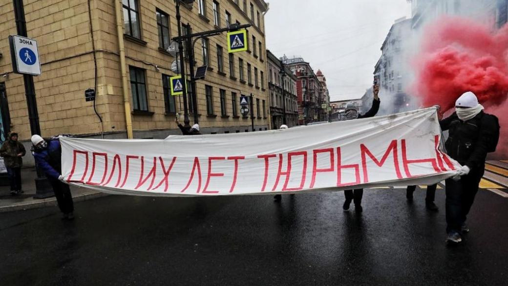 В Санкт-Петербурге активисты решили поздравить президента России Владимира Путина с днем рождения и растянули баннер с надписью «Долгих лет тюрьмы». Об этом сообщает корреспондент «Медиазоны».