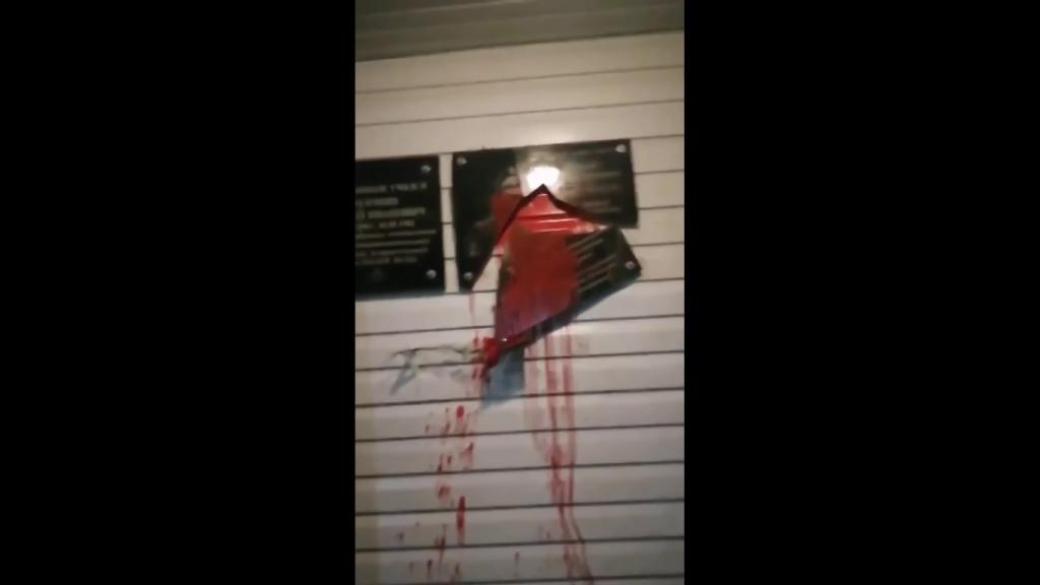 В российской Ухте неизвестные сломали и облили красной краской, имитирующей кровь, мемориальную доску Арсена Павлова (Моторолы).