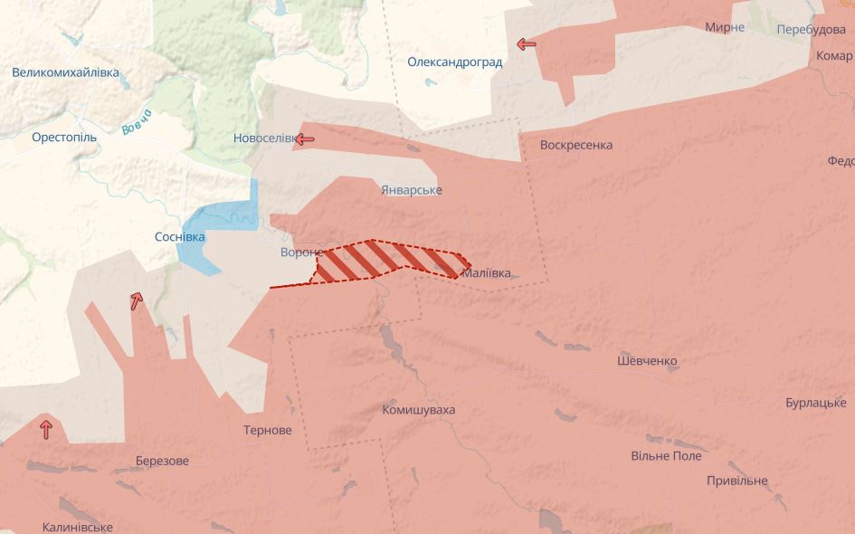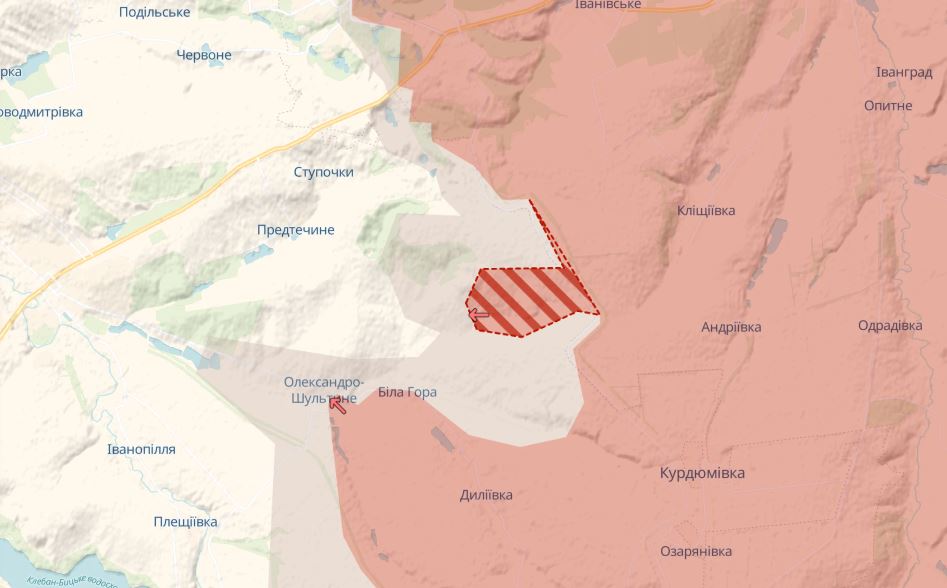 Аналитики проекта зафиксировали продвижение россиян возле Новоивановки и Охотничьего в Запорожской области, Вороного на Днепропетровщине, а также возле Белой Горы в Донецкой области.