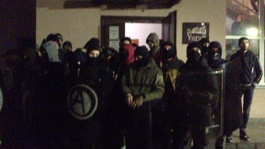 «Хотели поговорить о „отце анархизма“ и спросить их о российских источниках финансирования. Вместо диалога „шавки“ встретили активистов бросанием взрывчатых пакетов и выстрелами из травмата. Состоялись локальные стычки. Есть легкораненые. Спас „логово“ леваков приезд несколько десятков патрулей полиции, которые стали на защиту здания», — говорится в тексте сообщения.