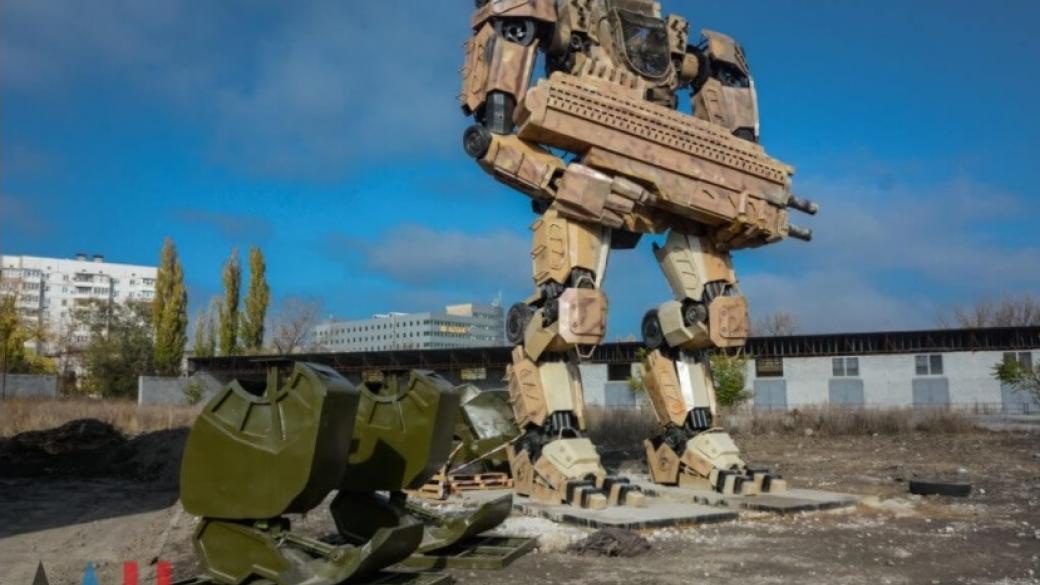 Огромные роботы-трансформеры появились в разных городах неподконтрольной украинскому правительству части Донецкой области. Они создаются силами предприятий и жителей.