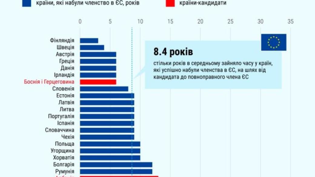 Как заявил еврокомиссар по вопросам расширения и политики соседства Оливер Вархели, подготовка к вступлению Украины в Евросоюз займёт "больше года или двух"