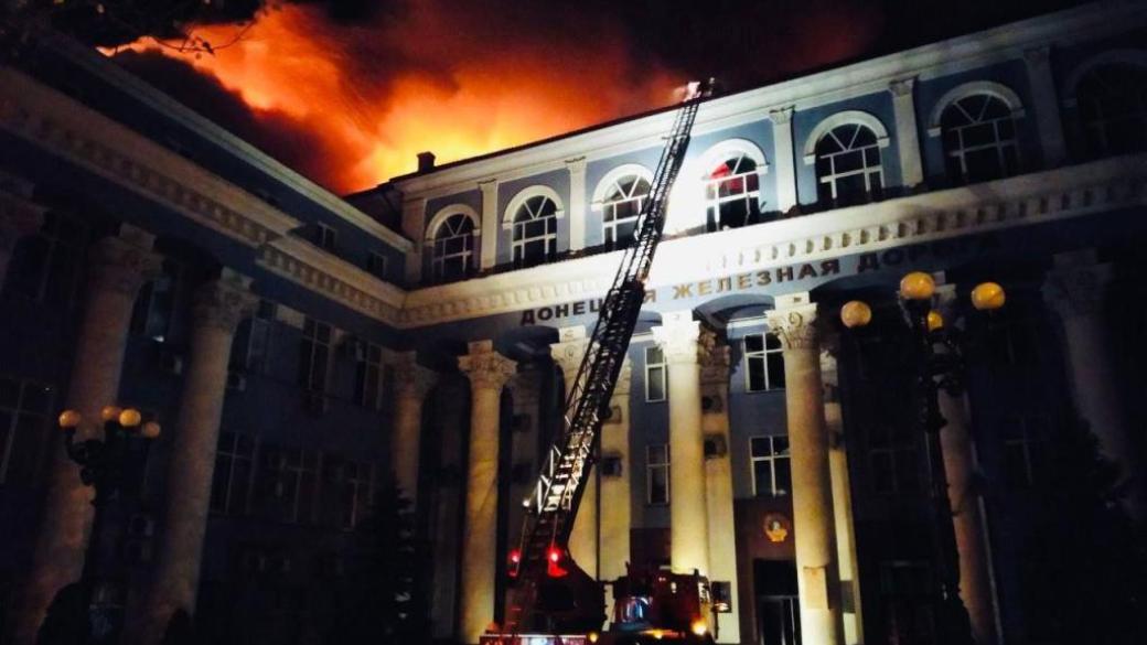 В центре Донецка пожар: в результате обстрела горит здание администрации. Опубликованы фото и видео
