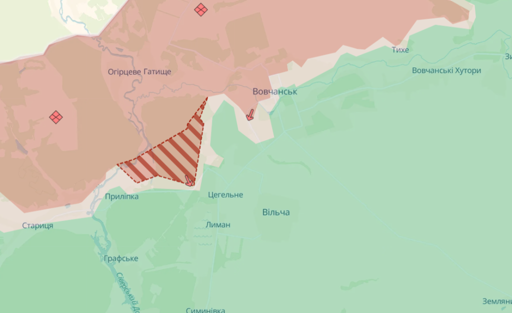 Зафиксировано продвижение армии рф в районе Прилипки на севере Харьковской области в районе Волчанска.