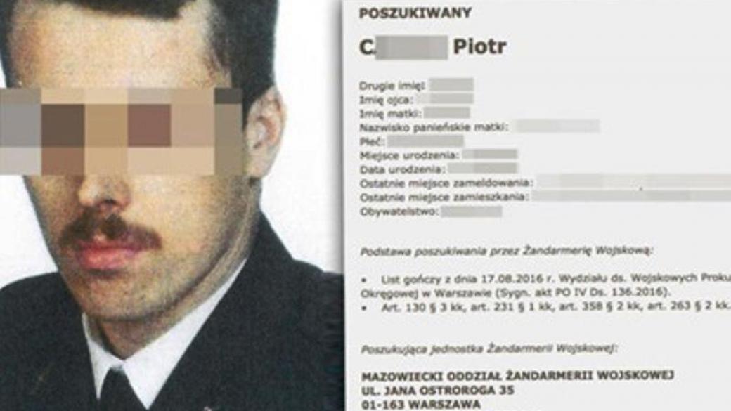 Источники сообщают: «Утром 6 декабря 2016 года был задержан старший лейтенант запаса Петр Ц., который находился в розыске с августа 2016 года. Окружная военная прокуратура в Варшаве предъявила ему обвинение по статье 130, пункт 3 «.