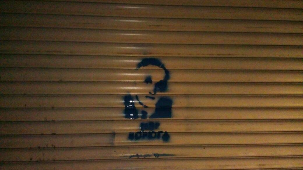На улицах Доброполья Донецкой области на разных зданиях появились граффити с изображением силуэта мужчины, похожего на мэра города Андрея Аксенова.