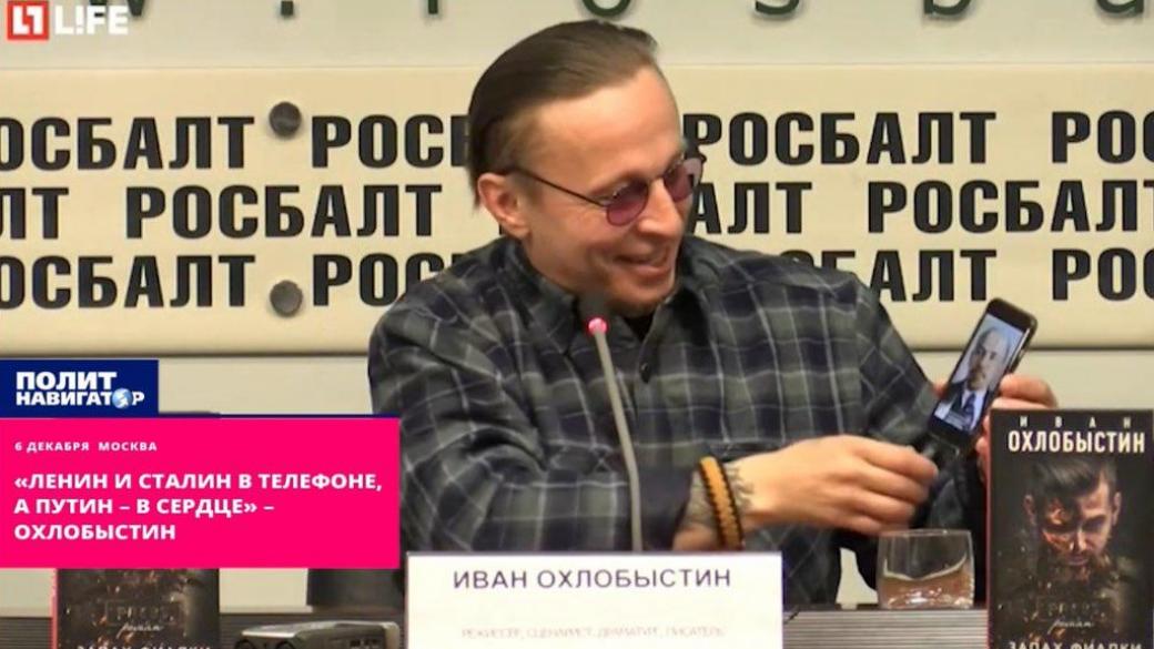 Скандальный российский актер Иван Охлобыстин, на презентации своей новой книги «Запах фиалки» показал свой мобильный телефон, на чехле которого изображен Иосиф Сталин, а на экранной заставке — Владимир Ленин. Об этом передает корреспондент «ПолитНавигатора».